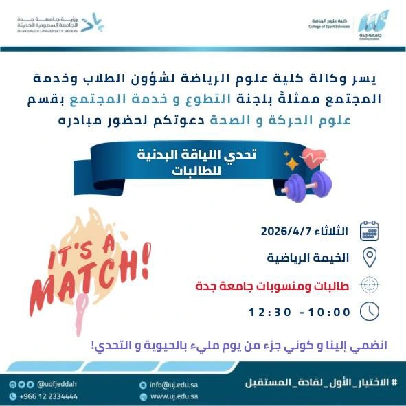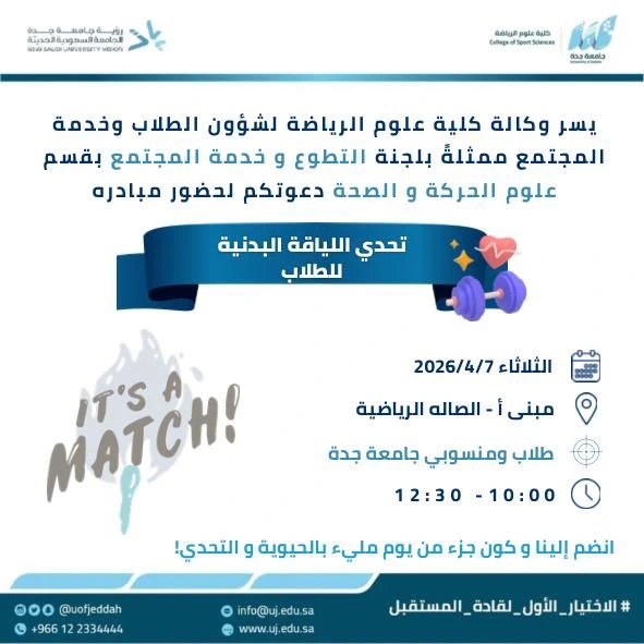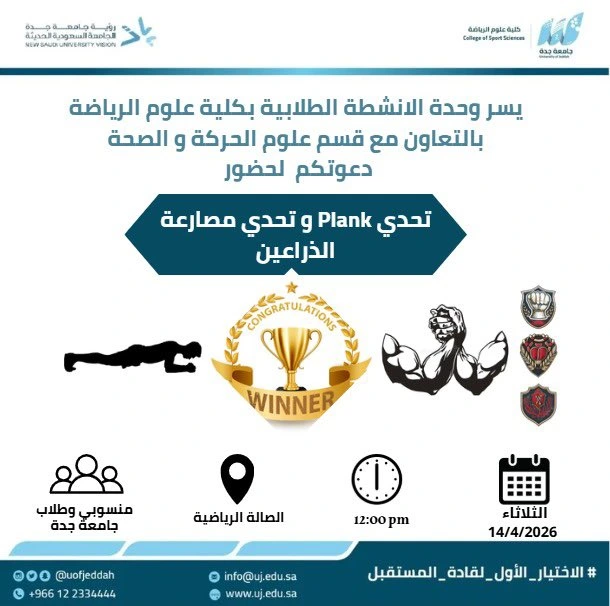 نلتزم في كلية علوم الرياضة بجامعة جدة بتوفير بيئة تعليمية ومنظومة بحث وابتكار لإعداد جيل من المتخصصين والقادة ورواد أعمال بمهارات مبتكرة للمستقبل الرياضي، يساهمون في مؤشرات الناتج المحلي ويشاركون في تعزيز جودة حياة المجتمع.