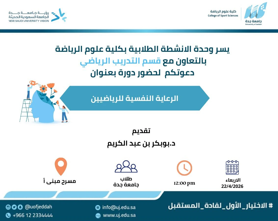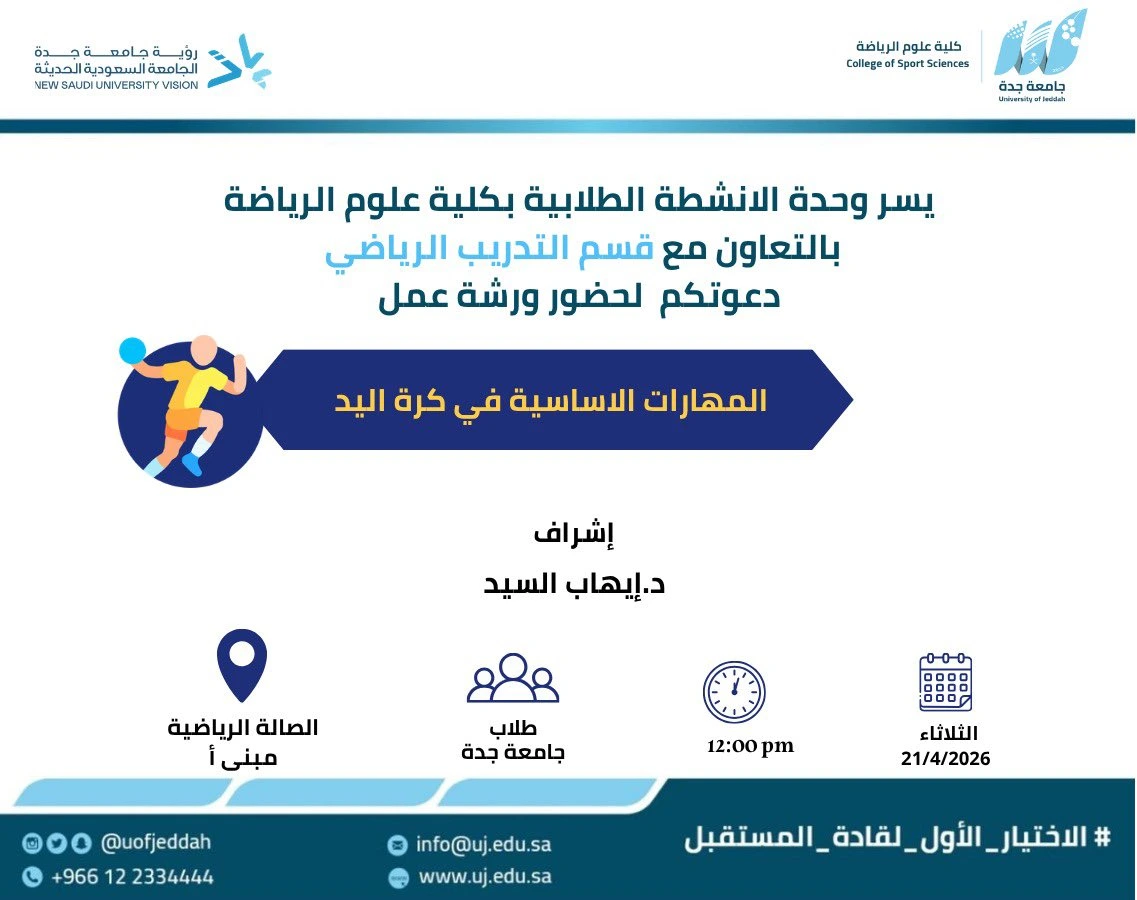نلتزم في كلية علوم الرياضة بجامعة جدة بتوفير بيئة تعليمية ومنظومة بحث وابتكار لإعداد جيل من المتخصصين والقادة ورواد أعمال بمهارات مبتكرة للمستقبل الرياضي، يساهمون في مؤشرات الناتج المحلي ويشاركون في تعزيز جودة حياة المجتمع.