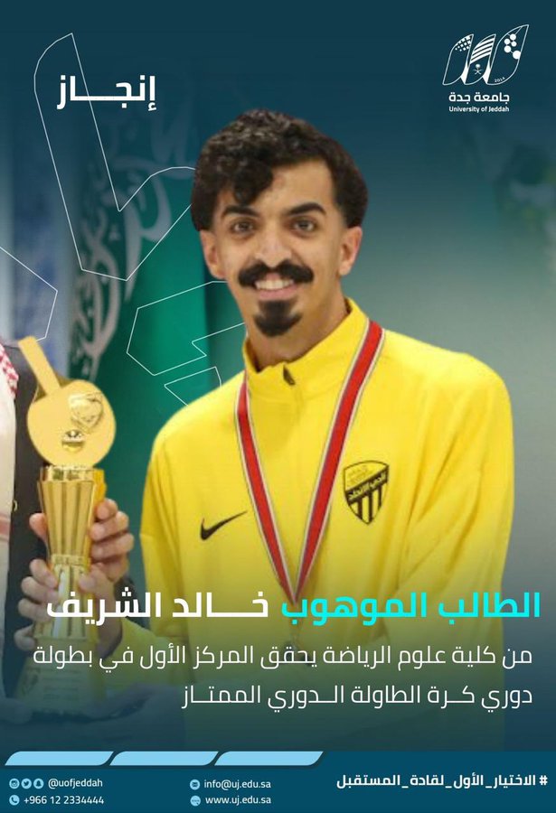 الطالب الموهوب من كلية علوم الرياضة تحقيقه المركز الأول