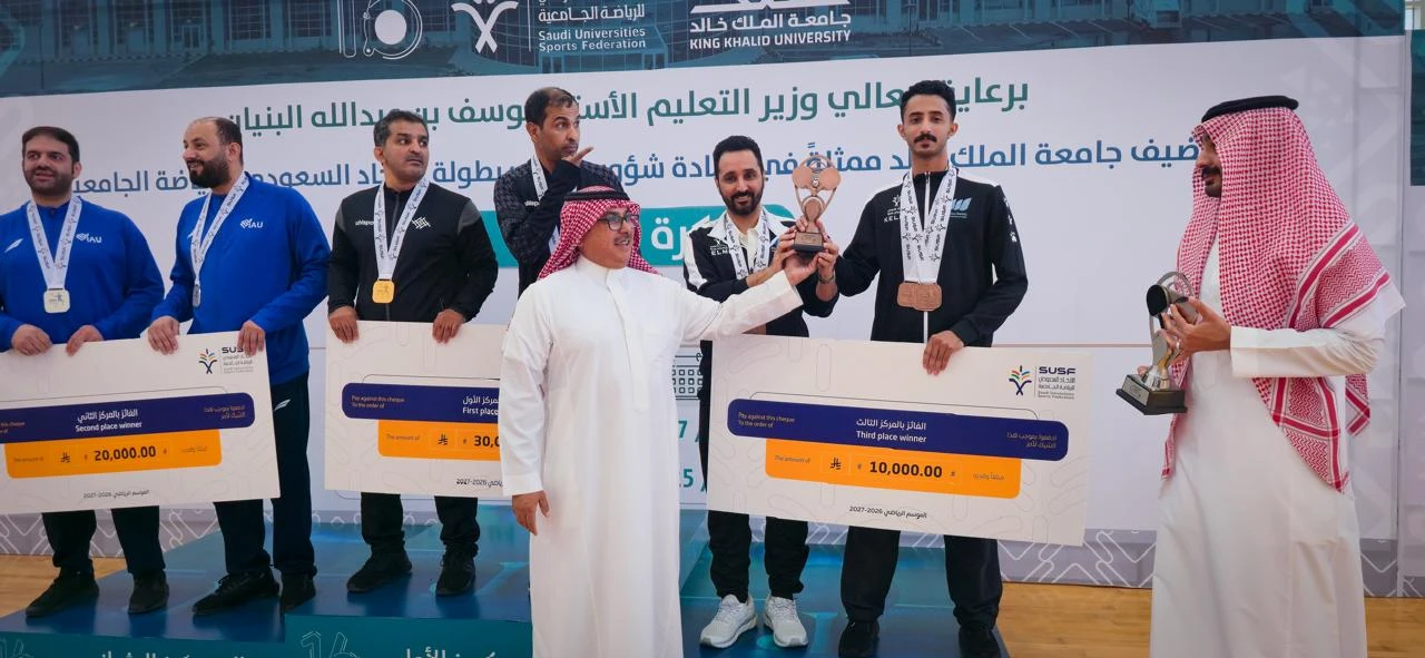 Champion student Khalid Sulaiman Al-Sherif from the College of Sports Science significantly contributes to Jeddah University achieving third place in the team rankings for table tennis at the 16th season of the Saudi University Sports Federation Champions